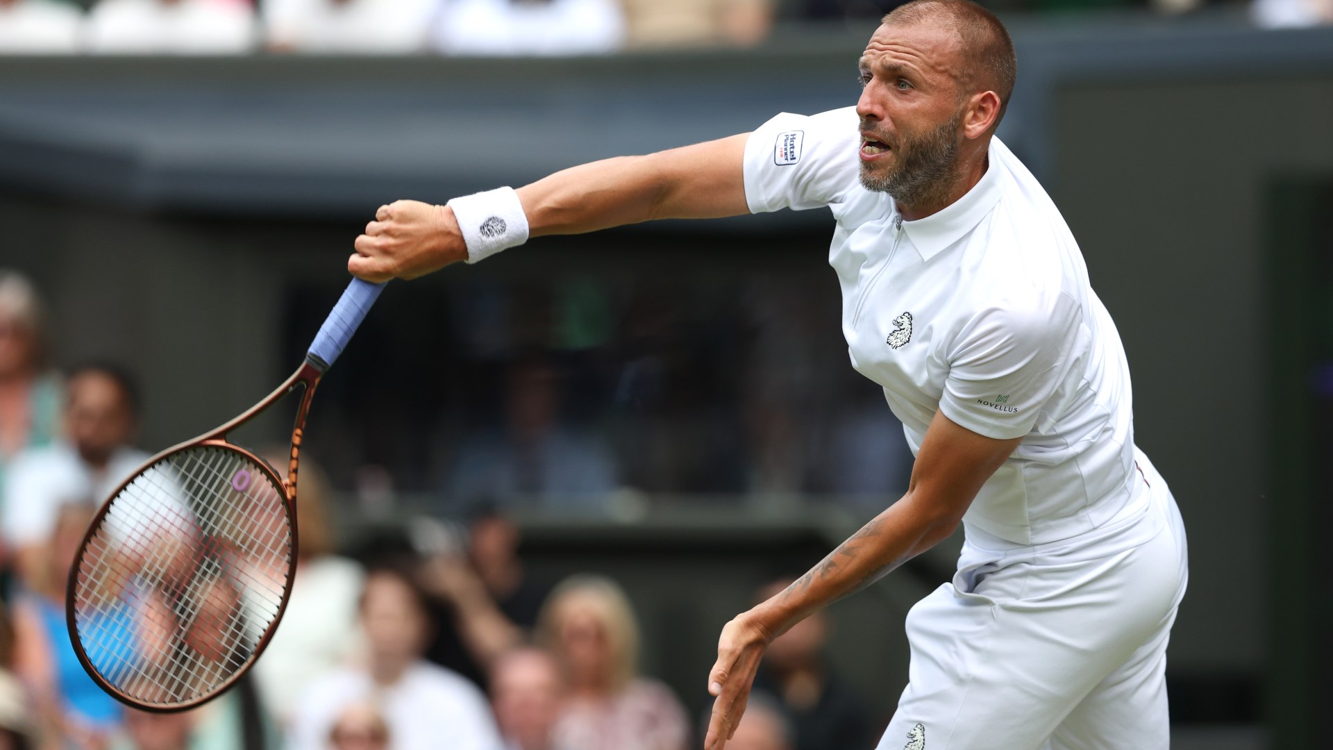 Um membro da multidão não gostou muito da raiva de Evans, e o britânico respondeu: “Obrigado, você também”.