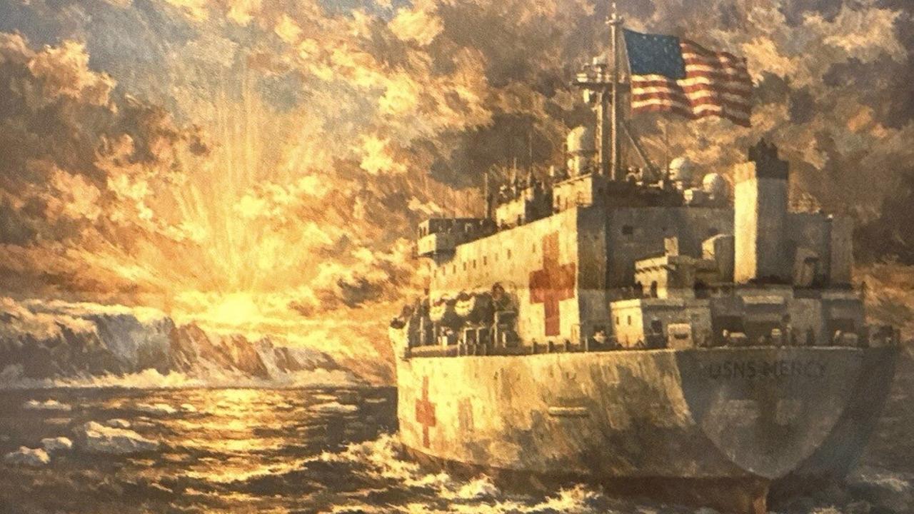 O anúncio digital foi acompanhado por uma representação visual do USNS Mercy, um importante navio-hospital da Marinha.