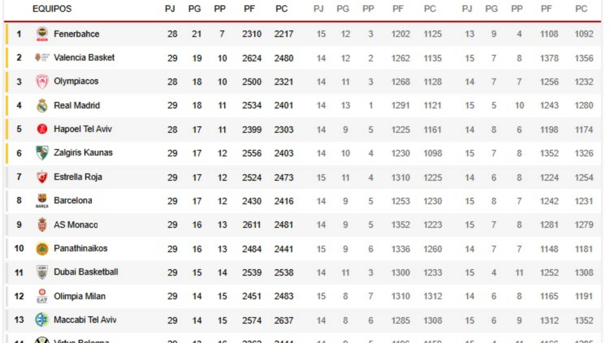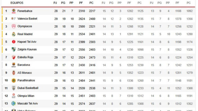 Início ESTATÍSTICAS Esta é a classificação da Euroliga