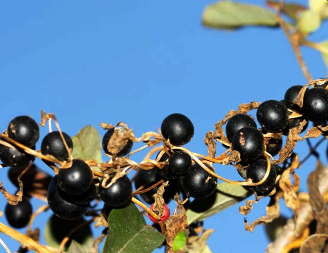 Inhame de bulbo preto Discreia melanofemaque cresce no sul e sudeste da Ásia, são parentes selvagens de nossos inhames cultivados. A planta é uma trepadeira rasteira que produz inhame comestível e pequenos bulbos chamados bulbilhos. O inhame de bulbo preto é assexuado, tendo perdido a capacidade de formar sementes e se reproduzir sexualmente. Em vez disso, produz bolhas, que caem dos inhames de bulbo preto para formar novos e idênticos inhames de bulbo preto. As bolhas têm uma estranha semelhança com frutas verdadeiras, ou seja, frutas carnudas dentro das sementes. Em particular, as bolhas de amora são semelhantes a outras amoras locais, como Phytolaca echinosa ou erva daninha indiana.