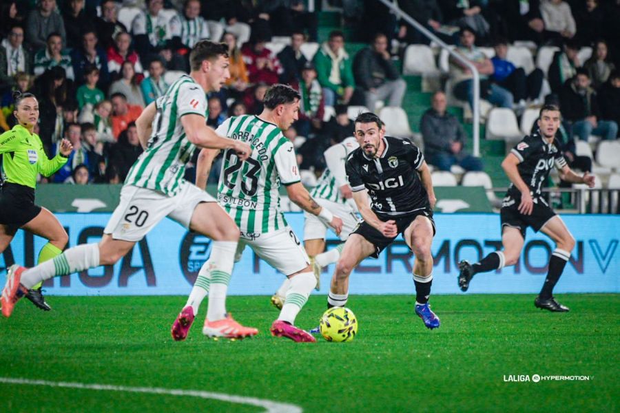 As equipas verdes e brancas começaram o jogo marcando primeiro Fuentes disparou contra a defesa e vários escanteios nos primeiros minutos. No entanto, a primeira foi uma oportunidade notável Burgos Claramente focado em roubar e fugir. Iker Álvarez executa um remate com o pé esquerdo de Coro.