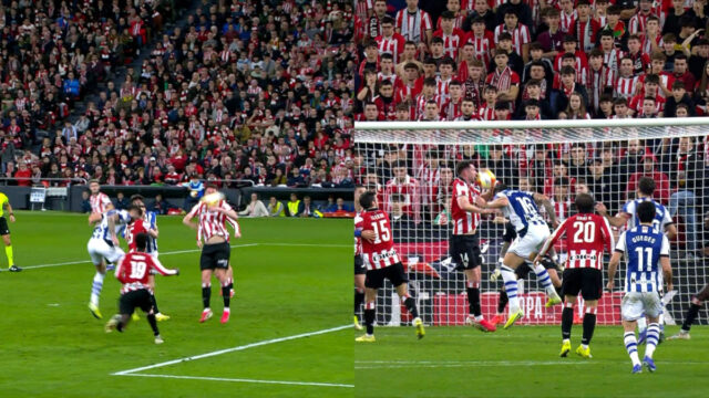 Aos 45 minutos do primeiro tempo, houve uma partida polêmica onde o árbitro da partida, Sanchez Martinez, decidiu não marcar pênalti, embora a partida tenha sido revista pelo VAR. Após cobrança de escanteio, Caleta Carr cabeceou para o gol no segundo poste, mas a bola bateu em Laporte de pênalti. No entanto, a jogada ficou impune, apesar dos protestos dos jogadores e do próprio treinador.
