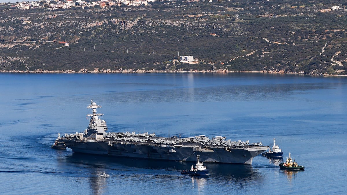 Além do porta-aviões Ford, uma frota de navios de guerra e aeronaves americanas está estacionada no Oriente Médio.