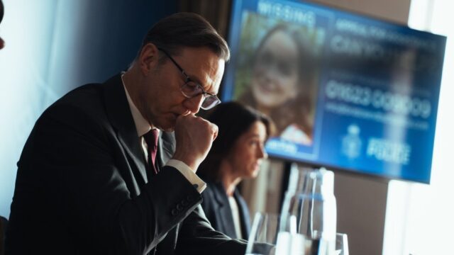 Em Gone, que segue para ITV e ITVX para sua estreia em março, Morrissey interpreta o diretor de uma escola particular britânica de elite, cuja esposa desaparece repentinamente. Entra em cena a detetive Anne Cassidy (Myers), que identifica Polly como a principal suspeita, e “The Vanishing” se desenrola como um thriller psicológico de gato e rato de alto risco entre a obstinada Cassidy e Polly, que se mantém firme.