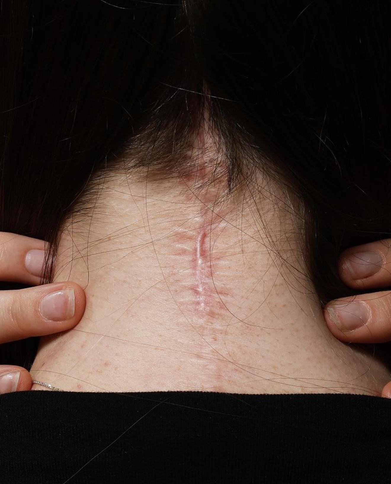 Cicatriz da operação de Andrea Magoliz.