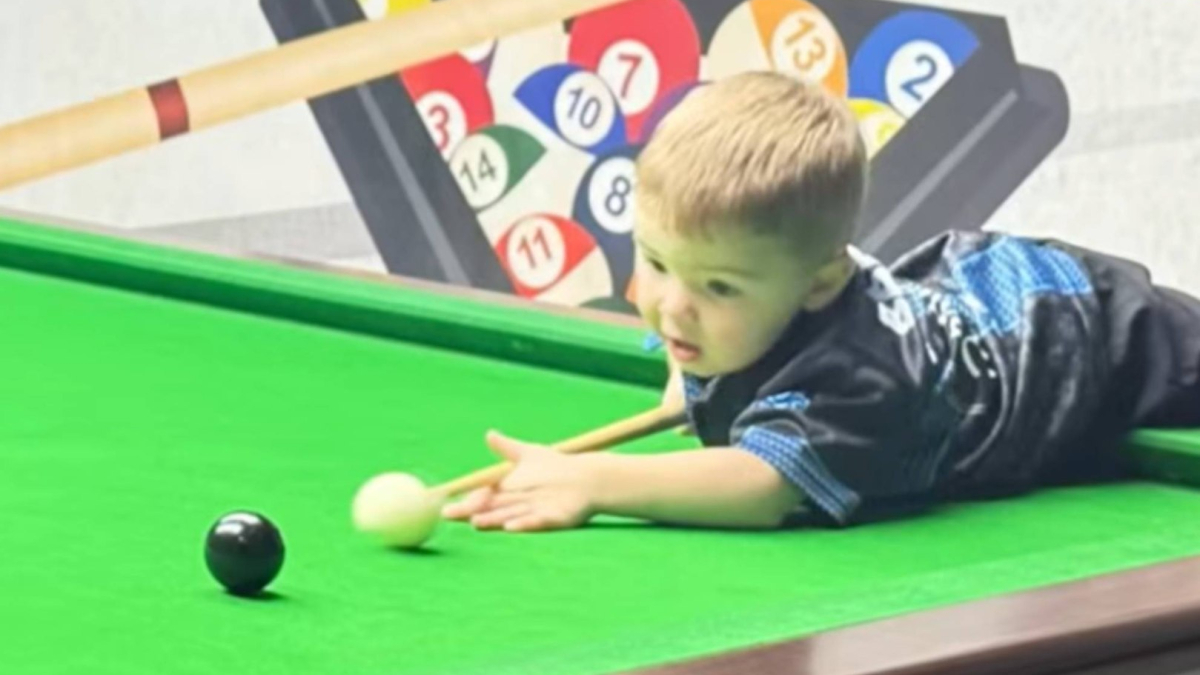 O jogador de sinuca Jude Owens, de dois anos, entrou no Guinness World RecordsRecordes Mundiais do Guinness
