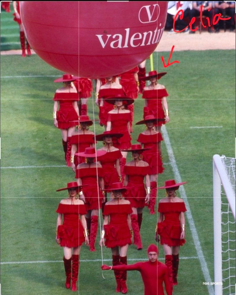Rapidamente percebi que este não era um desfile de moda comum. Participamos da cerimônia de abertura da Copa do Mundo. Cada continente tem seu próprio estilista: Estados Unidos – Valentino. África – Missoni. Ásia – Mira Schon. Europa – Gianfranco Ferre.