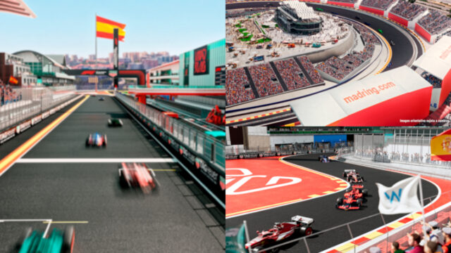 Modelagem Ele usou seus trabalhos recentes para mostrar como seriam esses pontos importantes do circuito. Começando na reta principal, em frente ao prédio principal IFEMA. Imagens virtuais já mostram a primeira curva, com uma grande bandeira Espanhacomo área principal de onde o pódio começará em grande estilo Monza. Essa é uma área que se usa todos os dias, mas já mostra como a cova é formada e onde fica reta.