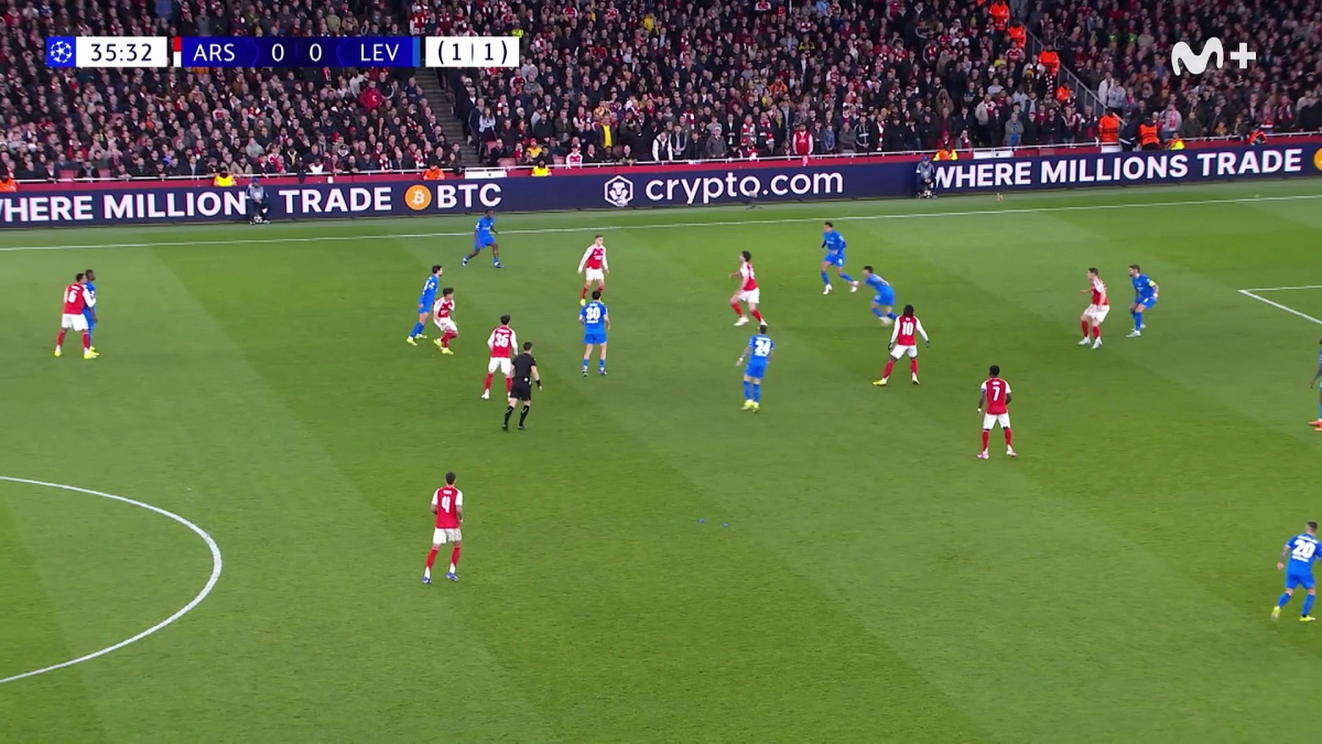 O Arsenal mereceu durante todo o primeiro tempo e mostrou isso. Aos 36 minutos do primeiro tempo, Eze chega à beira do campo, corre para frente e acerta um obus que Blasevich, que parou tudo, não consegue alcançar. Os jogadores ingleses olham para o escudo como se dissessem que é o Arsenal e que estou aqui. O time londrino sai na frente, o que insisto, é merecido e coloca o empate.