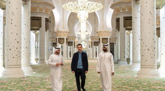 O convidado da mesquita foi presenteado com um exemplar do livro “Grande Mesquita Sheikh Zayed… Fluxo da Paz”, que destaca a arte arquitetônica única da mesquita e leva os leitores a uma viagem fotográfica para aprender sobre a estética da arte arquitetônica da mesquita, através de um conjunto de imagens que ganhou o prêmio “Espaços de Luz”.