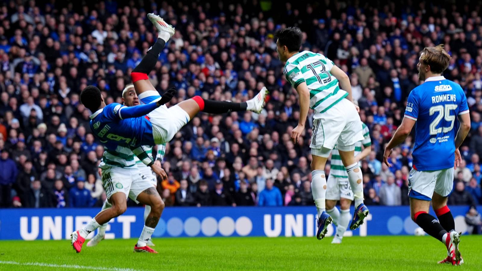Mas em uma reviravolta dramática no segundo tempo, o cabeceamento de Kieran Tierney e um empate dramático no último suspiro do substituto Rio Hotate – depois que o goleiro do Gers, Jack Butland, defendeu sua cobrança de pênalti e seu segundo remate no rebote – deram ao Celtic um ponto merecido.