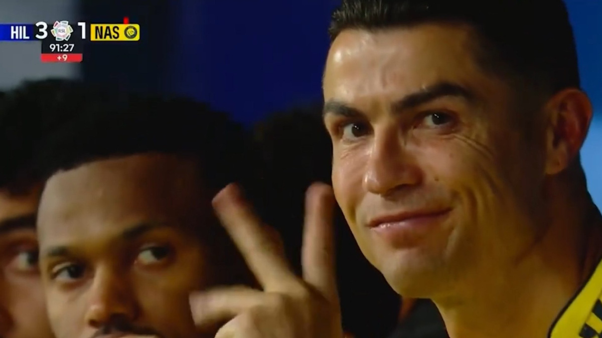 Após o placar estar em 2 a 1, Jorge Jesus substituiu Cristiano Ronaldo e CR7 apontou que era “impossível”. Naquele momento, parece que ele ficou bravo com o técnico com a substituição, mas a raiva pode ser melhor com o árbitro da partida. Poucos minutos depois, quando o placar final chegou a 3 a 1, também de pênalti, Cristiano olhou para a câmera e com um sorriso férreo sinalizou com a mão que seu time havia sido privado do jogo.