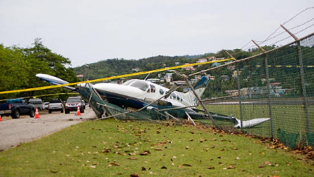 Imagens de vídeo mostraram socorristas correndo para a pista enquanto os destroços espalhados do avião pegavam fogo.