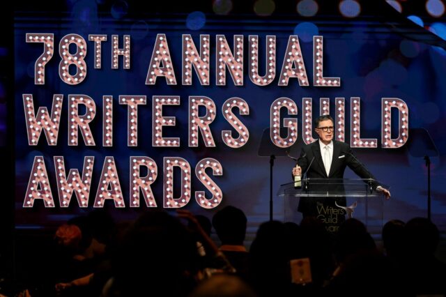 Depois de receber o prêmio Walter Bernstein deste ano do Writers Guild of America East, o escritor cessante show noturno O apresentador Stephen Colbert usou seu tempo no palco para defender seus funcionários e desferir um golpe final na Paramount, controladora da CBS.