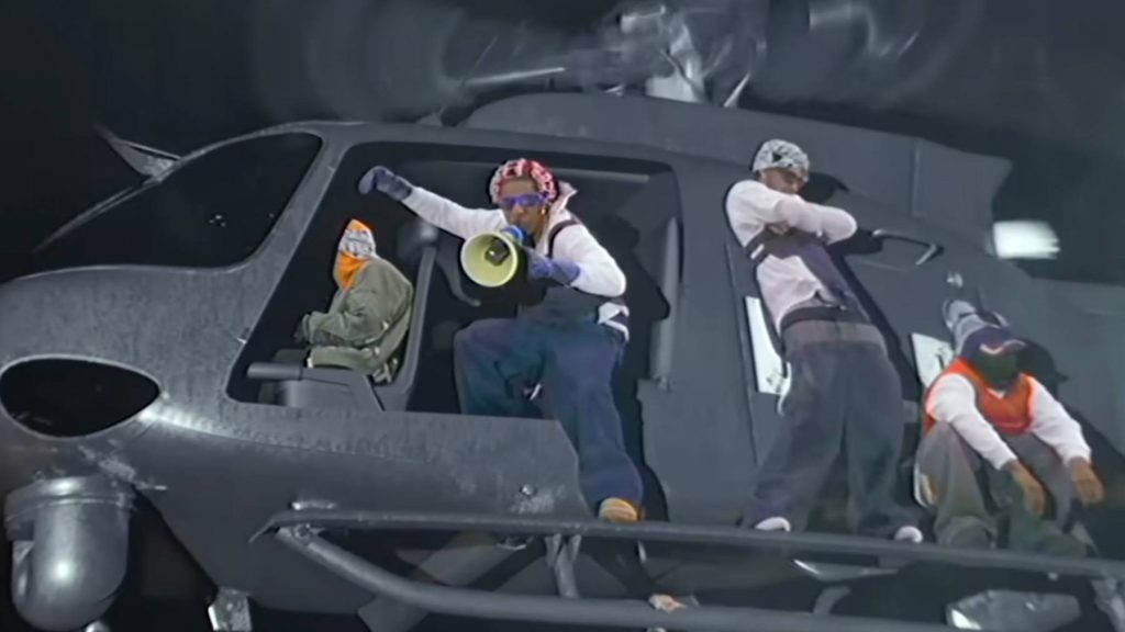 O artista revelou uma nova música, “Helicopter”, na segunda-feira, junto com um vídeo caótico que apresenta tumultos nos telhados, confrontos policiais e um final tumultuado. A música precede seu novo álbum, Não seja estúpidochegou na sexta-feira, 16 de janeiro.