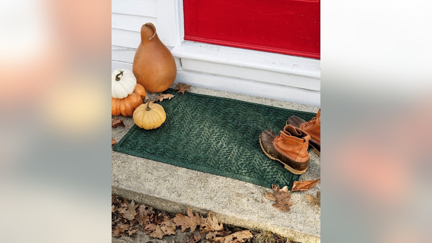 esse Capacho LL Bean Pegar lama e sujeira Mas também dá um tom divertido e sazonal. desenho de árvore pequena Parece madeira no inverno. e feitos de materiais reciclados. Eles vêm em vários tamanhos, de pequeno a extra grande. Isso o torna ideal se você estiver entrando em um apartamento pequeno. ou uma grande varanda frontal