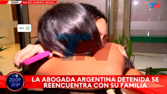 Agustina PaezO advogado argentino preso no Brasil sob acusação de racismo conheceu o pai e a irmã no Rio de Janeiro depois de quase um mês. Imagens exclusivas de TN Eles mostraram os abraços calorosos que tinham um pelo outro.