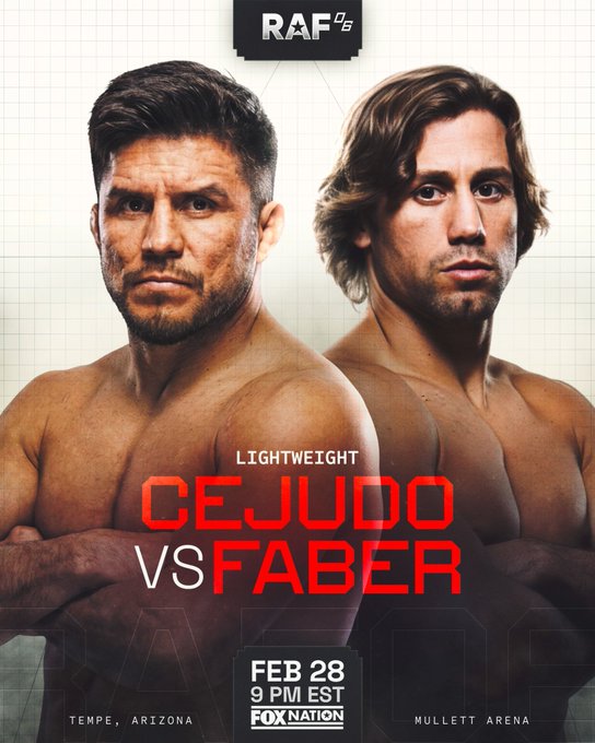 Faber está programado para retornar para uma luta de wrestling contra o ex-campeão Henry Cejudo em 28 de fevereiro no RAF 6 em Tempe, Arizona.