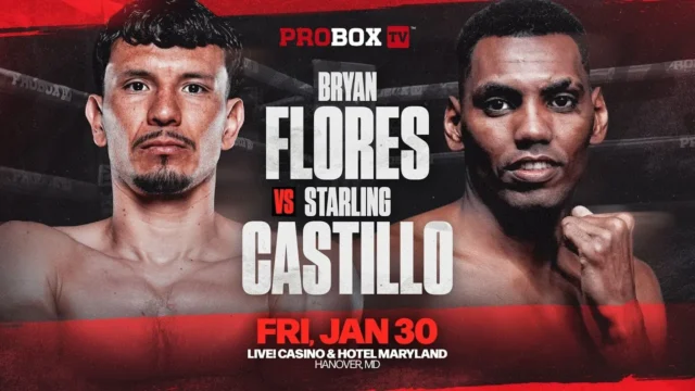 Brian Flores pesou 139,6 libras na pesagem de quinta-feira, enquanto Starling Castillo pesava 138,2 libras em sua luta de 10 rounds no peso meio-médio júnior no Friday Live! Cassino Hotel Maryland.