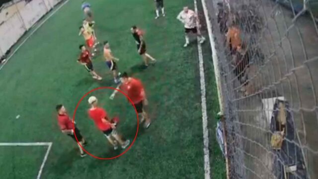 Quando o jogo foi interrompido, várias pessoas saíram do campo e empurraram o acusado para dentro do campo para evitar que ele escapasse. “Fique aí, você não vai sair daqui, filho da puta.”apontou para o chutador antes de empurrar o ladrão designado para o chão.