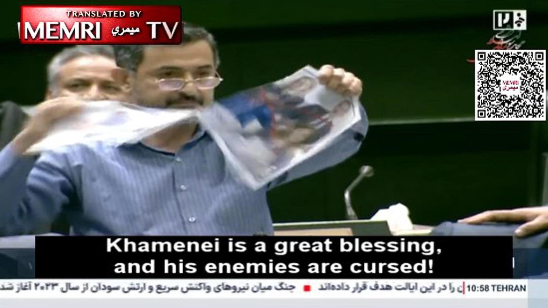 E um deputado iraniano ultraconservador exibiu na sala uma fotografia representando alguns líderes europeus, incluindo o Presidente da República, Sergio Mattarella.. Segundo os iranianos, o Parlamento Europeu insultou o Líder Supremo Ali Khamenei. Assim, na segunda-feira, Mojtaba Zarei, um parlamentar pertencente à ala mais radical, rasgou o papel enquanto outros delegados gritavam slogans de lealdade ao governo iraniano. Entre as frases, “Khamenei é uma fonte de bênçãos e seus inimigos não têm sementes”. No discurso de Zarei, que representa uma linha dura no parlamento; Ele definiu o Parlamento Europeu como “corrupto”; Apresentando retratos de vários líderes europeus, incluindo a Presidente do Parlamento Europeu, Roberta Metsola, o Presidente francês, Emmanuel Macron, o Rei Filipe de Espanha e a Eurodeputada da Federação Italiana, Isabella Tovaglieri. Zarei também Aqueles que atacam a Europa chamam-na de “a terra do fascismo e do nazismo”. dizendo que Trump iria “depor os europeus corruptos” enquanto o Irão era “sujo e rebelde”.