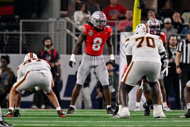 Arvell Reese trocou seu capacete do estado de Ohio por um chapéu de gerente geral no NFL Scouting Combine, onde começou a se reunir com potenciais empregadores e disse que planeja ser um pass rusher na NFL.