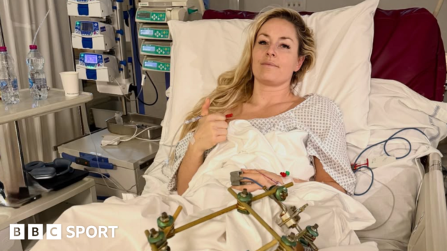 Lindsay Vonn diz que está “fazendo progressos” depois de passar por uma terceira cirurgia bem-sucedida na perna que quebrou em um acidente nas Olimpíadas de Inverno no domingo.