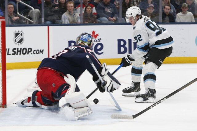 Acredita-se que Kent Johnson tenha dado a vantagem aos Blue Jackets apenas oito minutos no meio do jogo, mas a vantagem foi anulada depois que Utah o desafiou com sucesso por impedimento.