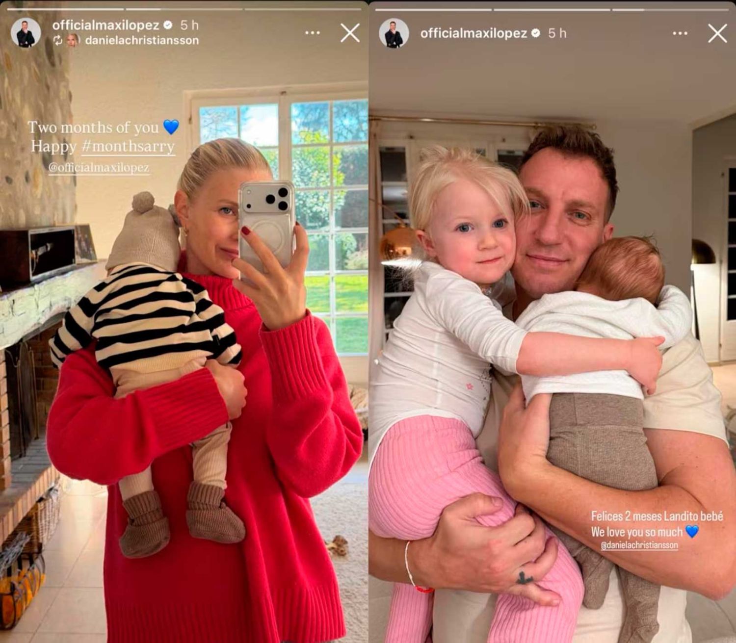 O ex-jogador de futebol escreveu: “Feliz 2 meses, querido Landito. Nós te amamos muito”. Com uma foto dele segurando Lando e Elle.