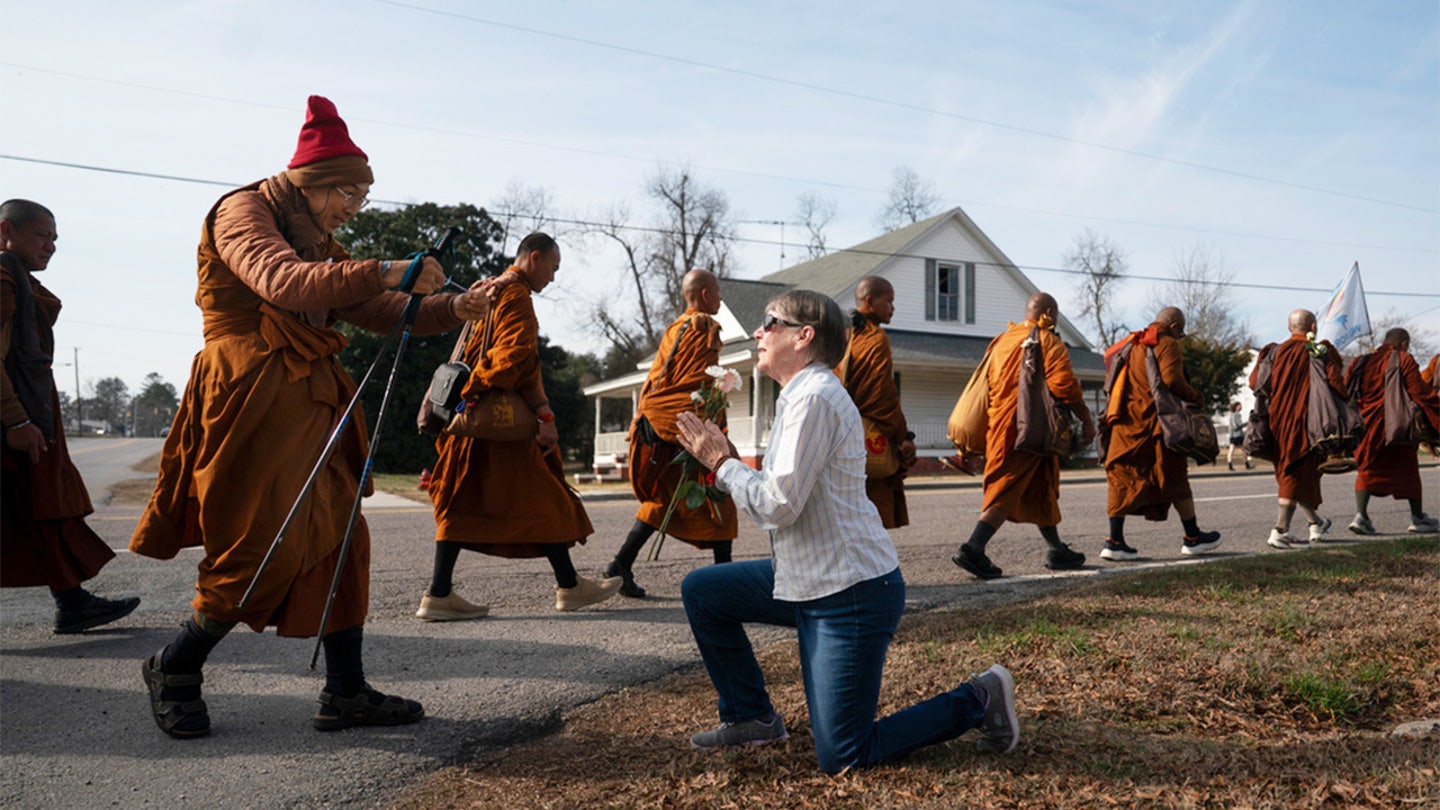 Os monges embarcaram numa viagem a pé por todo o país, captando a atenção nacional enquanto viajavam de Fort Worth, Texas, para Washington, D.C., como parte de uma viagem de meses que descrevem como uma prática espiritual.