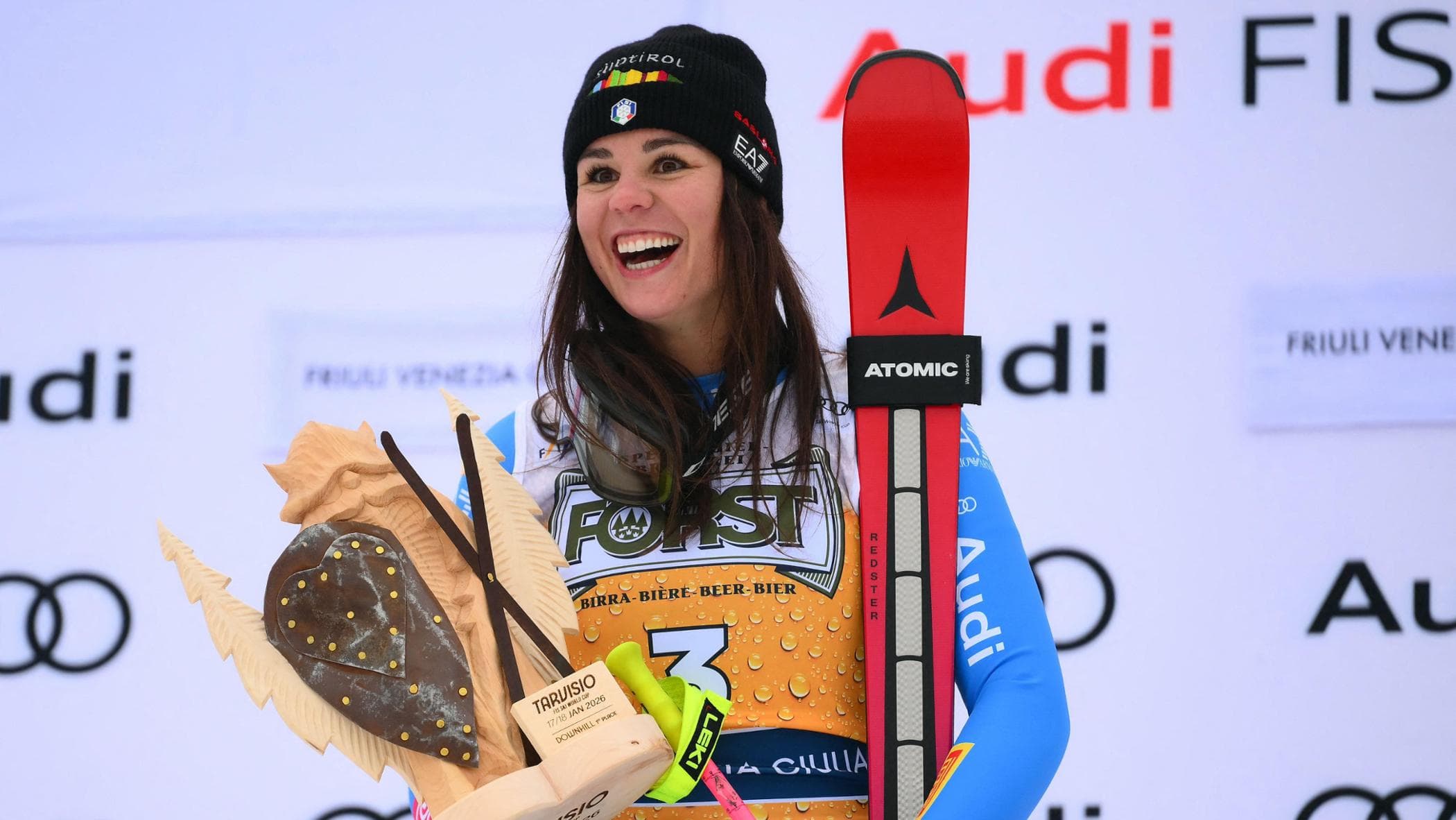 Assuntos italianos em Tarvisio World Exin. O triunfo foi sua primeira vitória na carreira na copa Nicholas Delago. No pódio com seu alemão Winkelmann e americano Vonn. Dos dez primeiros Sophia Goggia.
