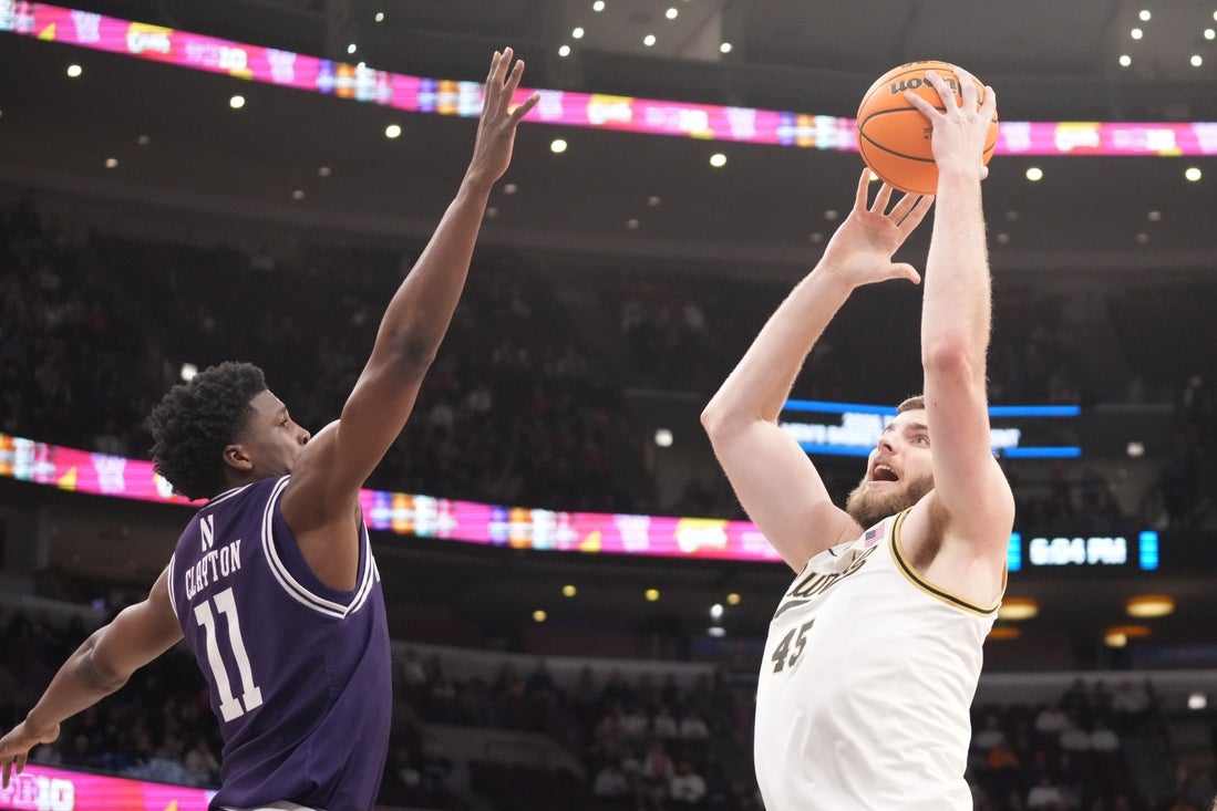 Nick Martinelli marcou 25 pontos, o melhor do jogo, Jayden Reid fez 19 pontos e nove assistências e Jordan Clayton fez 10 pontos para os Wildcats. Northwestern acertou 42,9% (6 de 14) na faixa de três pontos, apesar de não ter registrado seu primeiro trey até o segundo tempo. Os Boilermakers acertaram 34,8% (8 de 23) atrás do arco.
