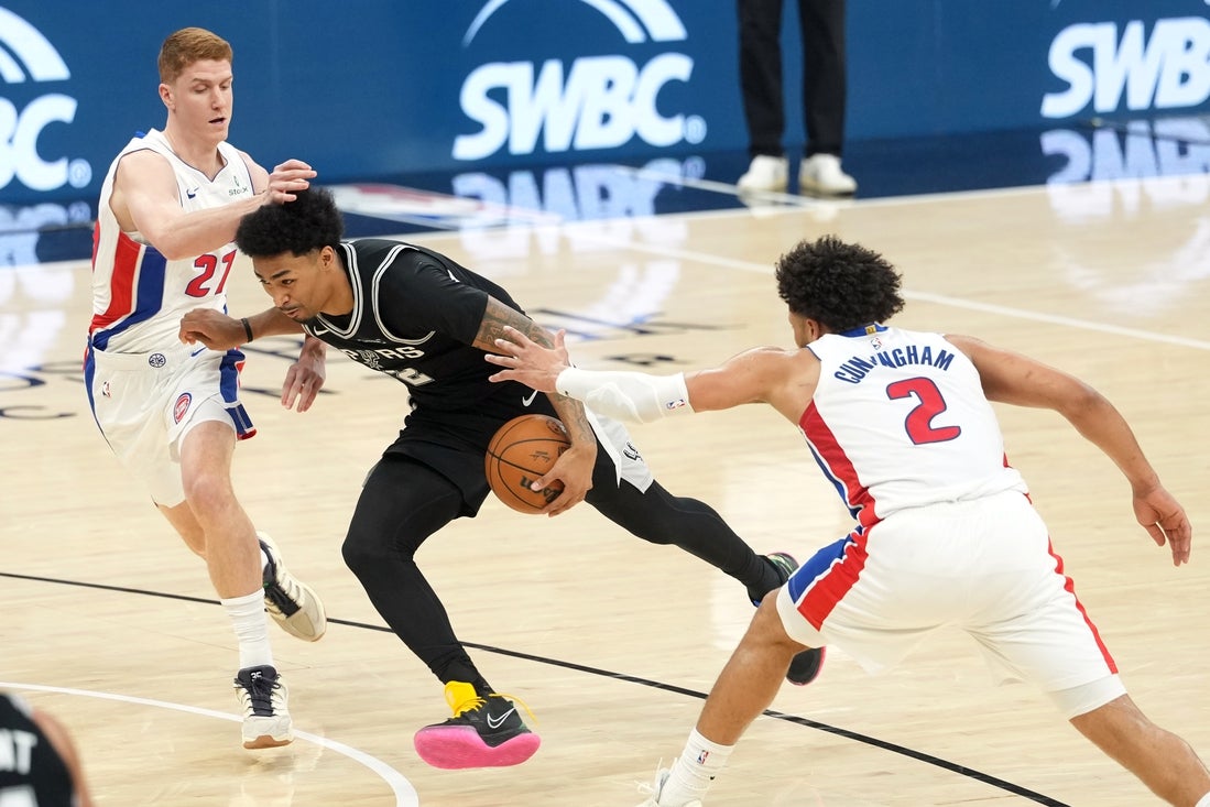 San Antonio, que está em segundo lugar na Conferência Oeste, deu o tom do jogo com uma vantagem de 19 pontos no primeiro tempo rumo a uma vantagem de 71-55 no intervalo. O Detroit reduziu a desvantagem para oito pontos no final do terceiro quarto, após lance livre técnico de Cade Cunningham.