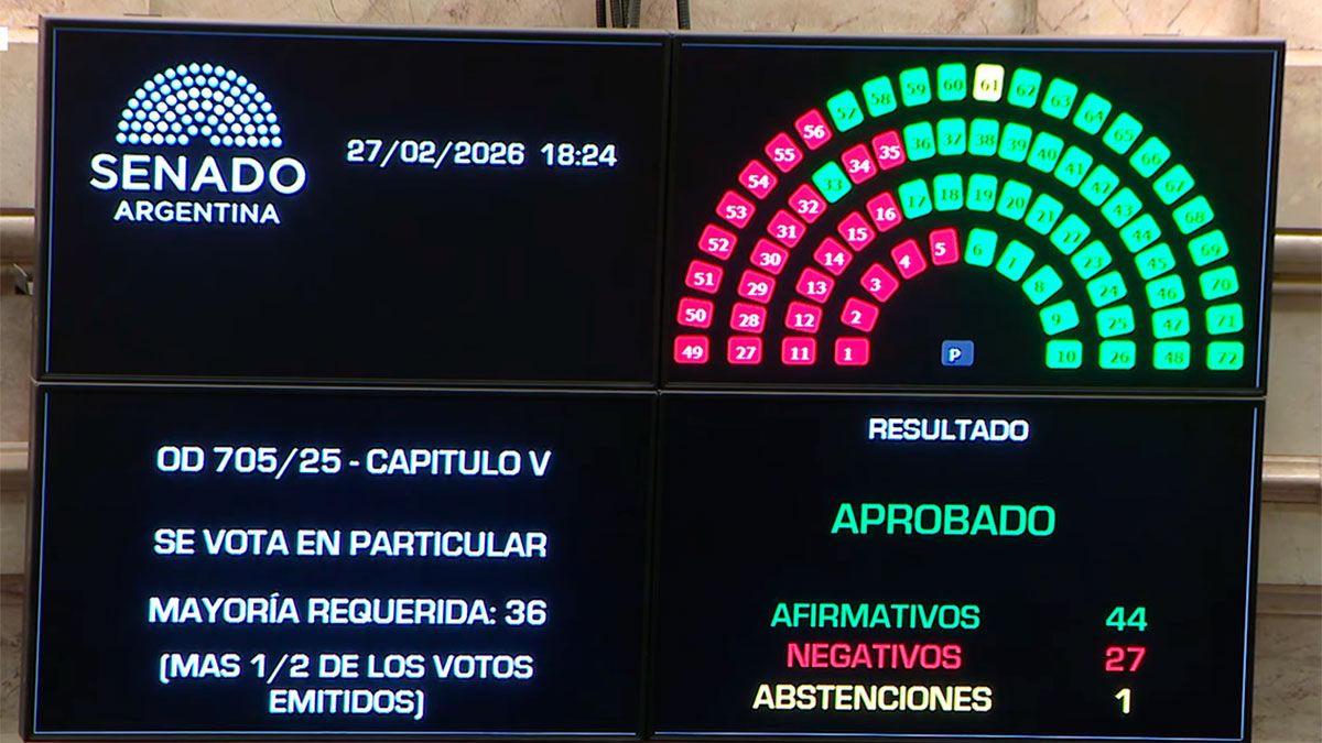 Com 44 votos a favor e 27 contra, apenas 1 abstenção. Um projeto de lei que já havia sido aprovado Câmara dos Deputados da Nação Agora aguarda o poder executivo instituí-lo e publicá-lo na organização jornal oficial.