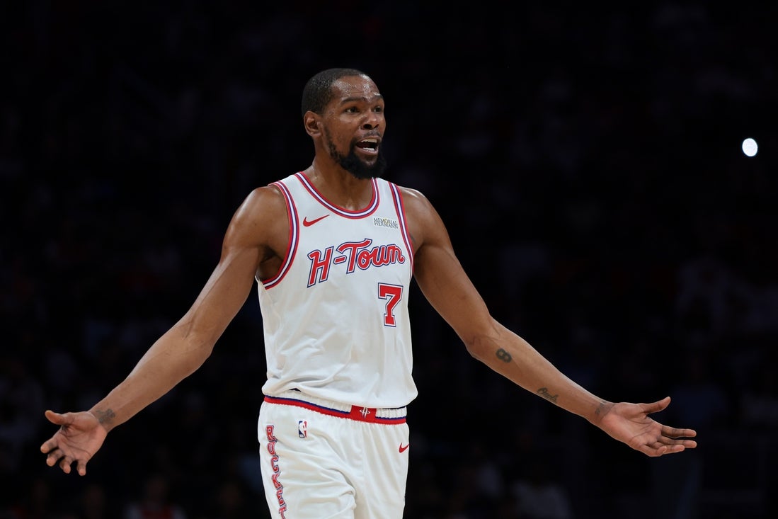 Durant, em sua 18ª temporada, é um dos melhores oradores – e artilheiros – da NBA. Ele lidera o Rockets com 26,2 pontos por jogo e está acertando 39,9% na faixa de três pontos.