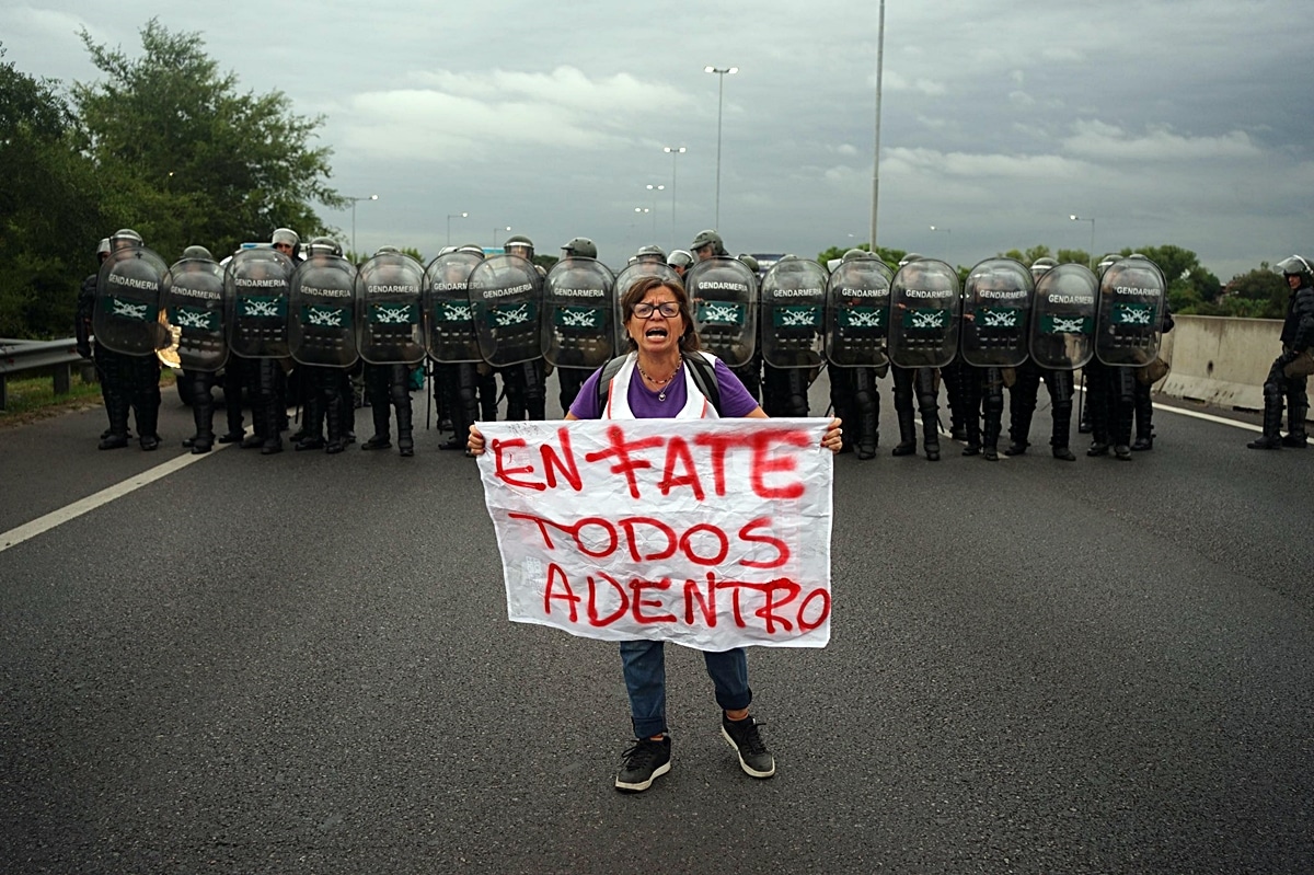 Pessoal de A Gendarmaria Nacional que perguntou aos trabalhadores se poderiam libertar pelo menos metade da linha Da Panamericana, o que finalmente aconteceu momentos depois. No entanto, informaram que embora o trânsito na área não seja o habitual nos dias de semana, quem precisa ir ao local do protesto pode ser desviado pela Avenida Avellaneda.