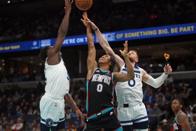 Dois dias depois de perder 22 pontos de longa distância na vitória em casa por 123-11 sobre o Oklahoma City, Minnesota foi ajudado por acertar 18 arremessos de 3 pontos. Os Timberwolves acertaram 52,8 por cento em campo contra o Memphis.
