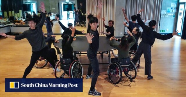 Os dançarinos estavam ensaiando. Além da jornadauma colaboração entre a Hong Kong Dance Company (HKDance) e a China Hong Kong Para Dance Sport Association.