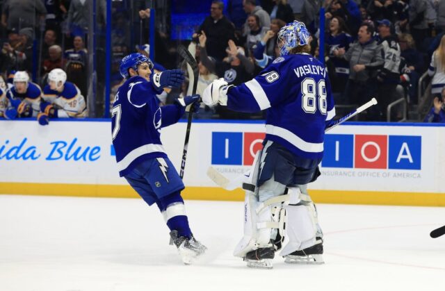 Kucherov estendeu sua seqüência de pontos para nove jogos (seis gols, 17 assistências) com uma contagem e três ajudantes.