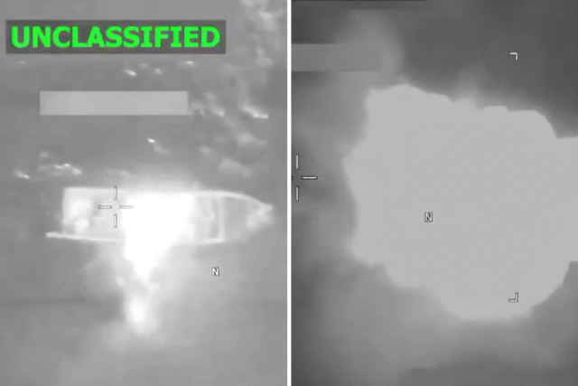 “As agências de inteligência confirmaram que o navio estava passando por uma rota conhecida de tráfico de drogas no Pacífico Oriental e estava envolvido em operações de tráfico de drogas. Três traficantes terroristas de drogas do sexo masculino foram mortos durante a operação. Não há forças militares dos EUA. Quem foi ferido?”